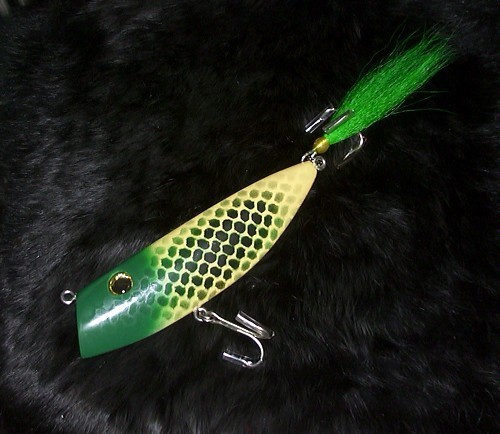 one is YELLOW W/ GREEN SCALES W/BLACK on top. the outher is WHITE W/ SILVER SCALES W/BLACK on top. one more left to do it's hanging drying now should be ready to paint, end of the week.