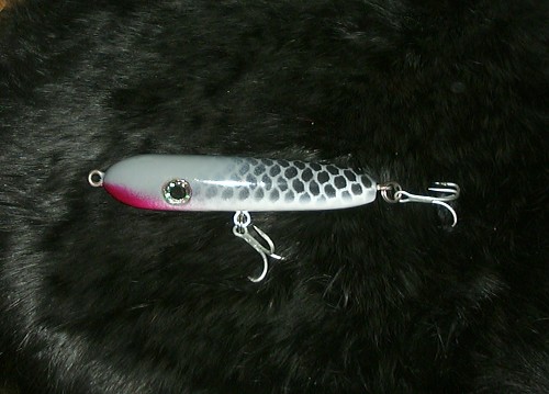 looking good Vinny .. just a personal prefference ,, but when I make a slope head, I like to have the slope make a smooth transition with the round .. no point on top . same with darter,,surfster, bottle darter.. Salty Dog ,,no fluff on tail of spook ..I'm being very critical today .. nice pluggage as always .