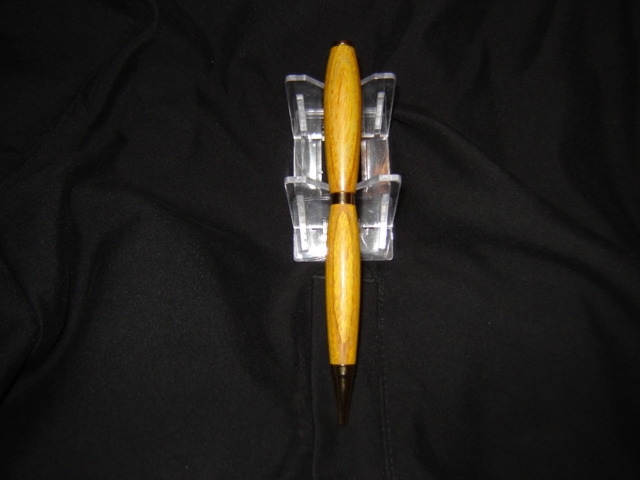 So Shannon and I have started expanding our lathe work to mix things up a bit. This is my first attempt at making a pen. It is turned form Osage Orange and I kind of like the "curve" aspect of the pen...if ya know what I mean Oh, I also eyeballed the centers on these really small blank for drilling