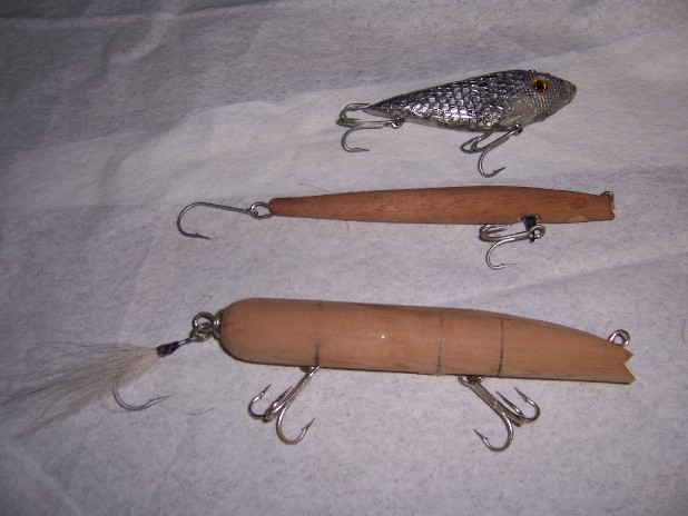 First are a pair of small poppers, Atom knockoffs, no doubt, and a needle fish, no idea where I got the idea, or who's design I plilfered, surely it wasnt my own...