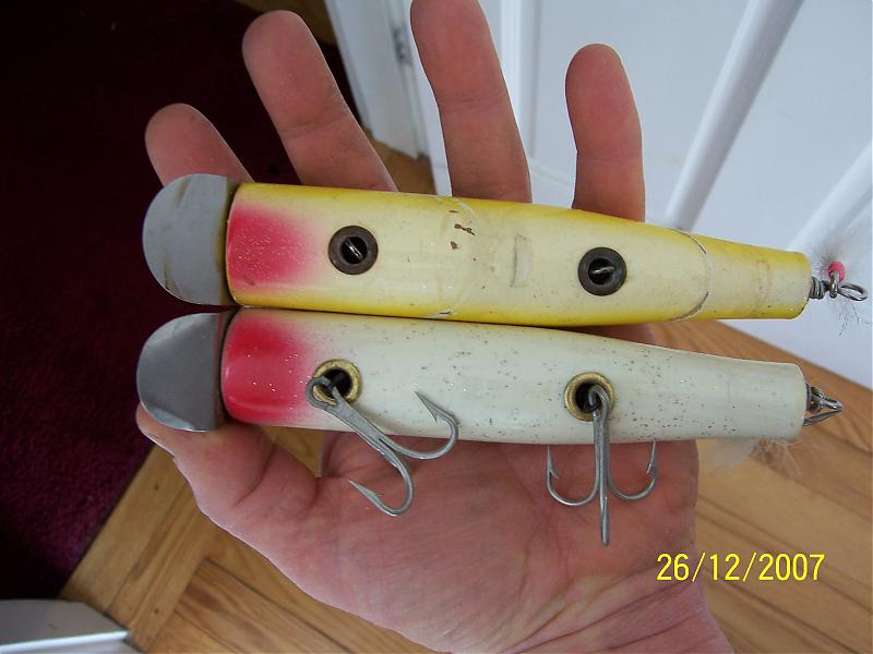No. Both the original Jr and Sr that I posted xrays of float the same, level with the water just above the lip slot and the tail just under. The original Jr that Paul showed has its lip very close to the centerline, but the larger version has its lip 1/8" above the centerline. I think, however, that I have seen Jr versions with the lip also above the centerline and I am wondering if this was the way he did it with earlier maple versions.