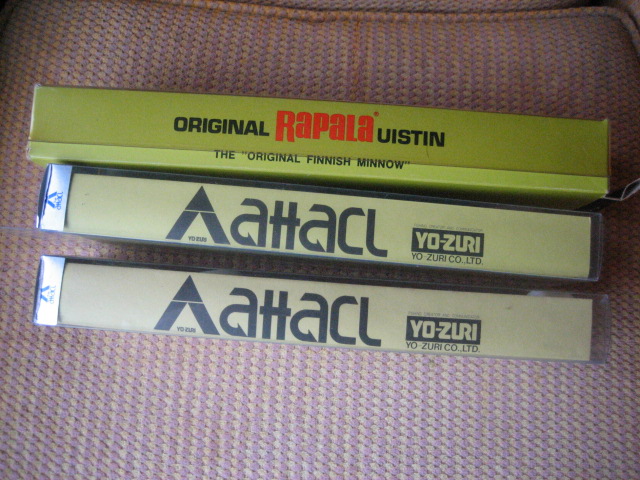 One is a 12" long Rapala 26 SM Mag and the other two are YO-ZURI L-Jack 240mm lures. All have wire leaders attached. I have no clue what they are worth. They look new. How about $40 plus shipping.... or??Click image for larger version