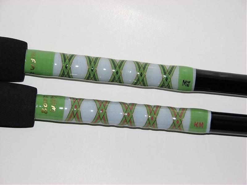 My lates projects. This is my first attempt at making matching rods. Its more work than I thought to try and get them the same. His and hers. They are fluke jigging rods.