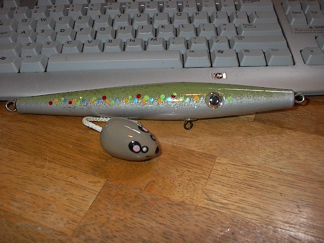 Now how are your cats going to catch anything with that mouse lure? No place to tie on. No hook on it. You know those cats would like to bring home a nice striper for dinner also!