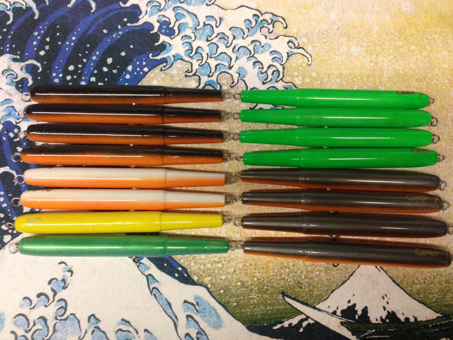 Did my go to needle color which is black over orange, then some gunmetal over orange, all yellow, green mullet, creamiscle, and classic block island green