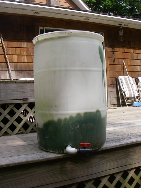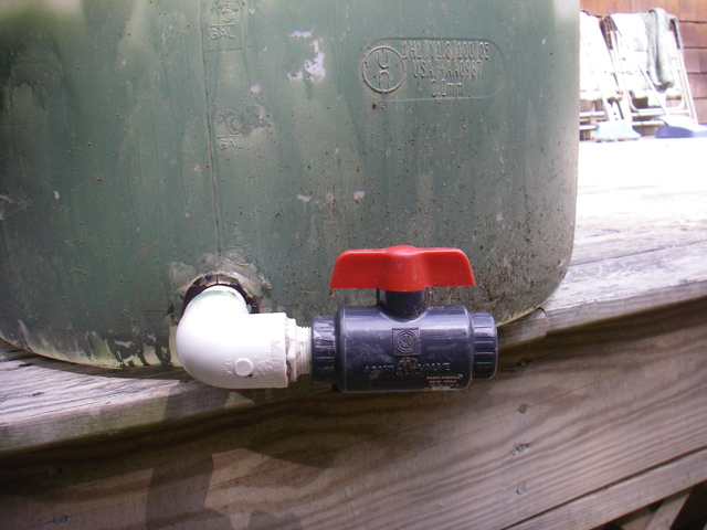 55 gallon plastic drum for storing a large number of eels. Drain valve installed.
