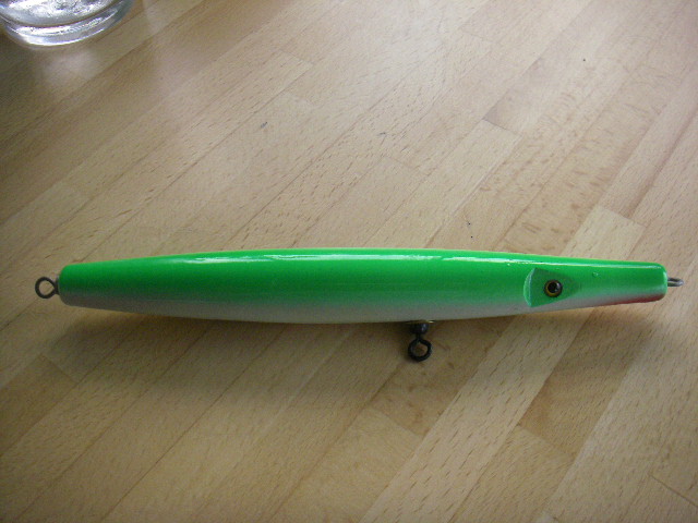 wade needle parrot green this is a great plug asking $50.00 also a black/purple/silver blind danny $35.00 and last a large cowboy whitew/pink $45.00 paypal or can meet in soco, N.kingstown area.