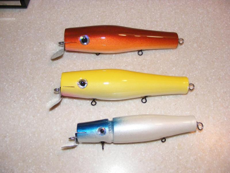 Good stuff. The bottom looks like a danny, the top two are more like a gibbs trolling swimmer or gary2 slim, with a pivot point ahead of center. They ought to have a big tail wag. Nice.
