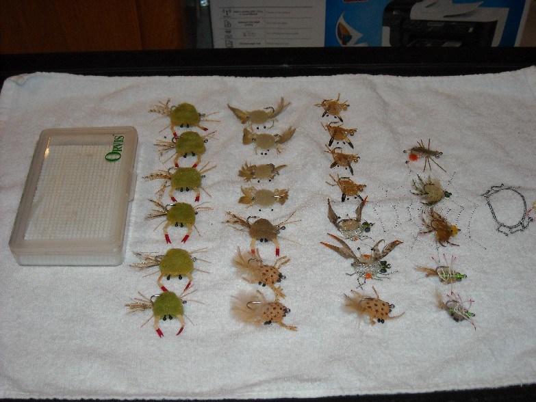 25 Crab flys new with Orvis nubby fly box $40 sold to choggieman