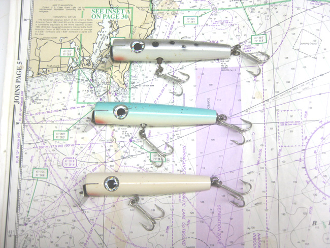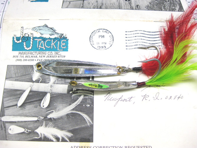 2 J&J block tin squids - a 1 oz J-12 Chuck's Herring squid - and a 1 oz J-H88 which was one of the most popular of their tins imitating most small baitfish