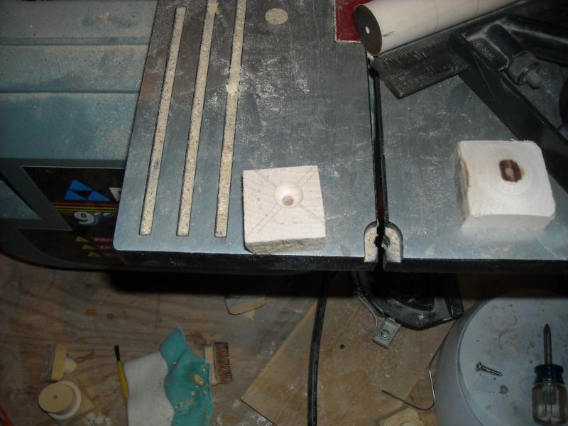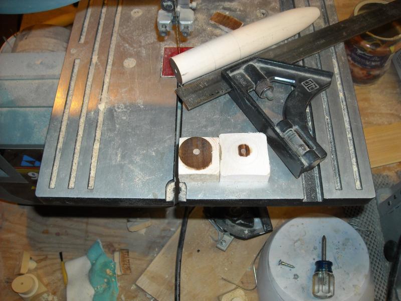 I know rockfish9 had a slick jig for the bandsaw that used the belly hole & a dowel but I wanted something that would work on the table saw and the drill press too.