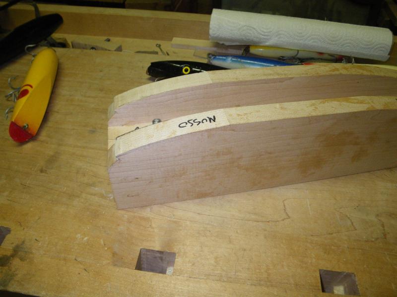 Note, I think there is a potential problem with hydro-orienting darters and bottles. The grain often ends up horizontal across the lip, rather than vertical. If the plug hits bottom, as darters often do, the lip shears off unless the grain is vertical. I also think, but am not sure, maple is more likely to split when the hook holes pass perpendicularly through the grain lines, rather than parallel to the grain lines. If I've got this wrong, I'm going to be very unhappy in a few months. Anybody know for sure?