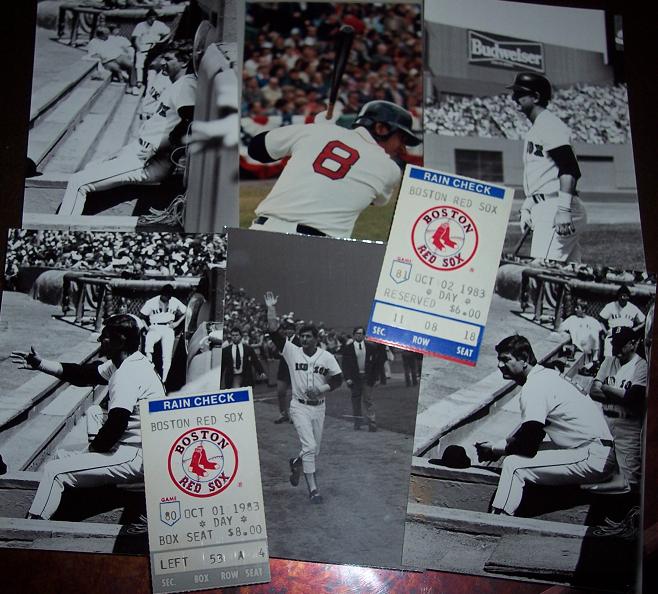 A few photos I took during Yaz last season! The color photo is his last Opening Day......the others were taken during the season.....the one of Yaz waving was taken during his infamous "Yaz Day" farewell lap around Fenway! I snapped the picture and gave him a high five......quite memorable! The ticket stubs were from his last 2 games! Notice the prices!! $8..00 reserved in the front row for "Yaz Day"!!!