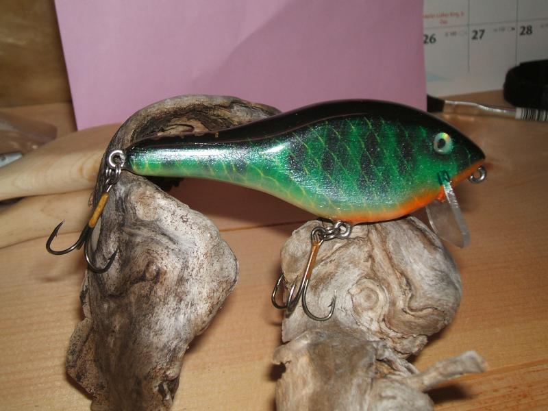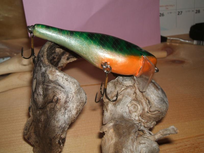 First attempt with the new airbrush I got from Santa. A little sweet water perch that I hope the smallies on Champ will crush. 4.25" at 1oz.