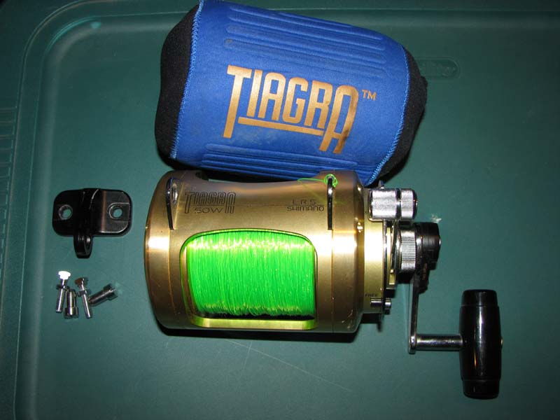 50# crap....lol....I belive it's ande.....My girl got me the reel a couple years ago when I was fishing the canyons a lot...So she had it spooled, I think thats what they put on it. I recomend taking it off tho if someone buys it & spooling it up with braid.