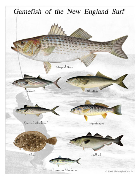 - 2 Gamefish of the New England Surf in 16x20 - it was exclusive to the Angler's Art, 8 Dentons superimposed over the image of a surfcaster - Was $225, now $150