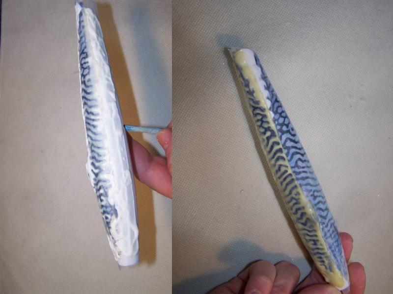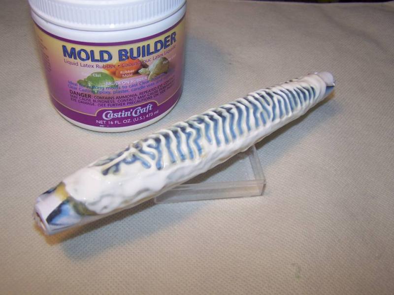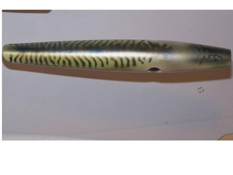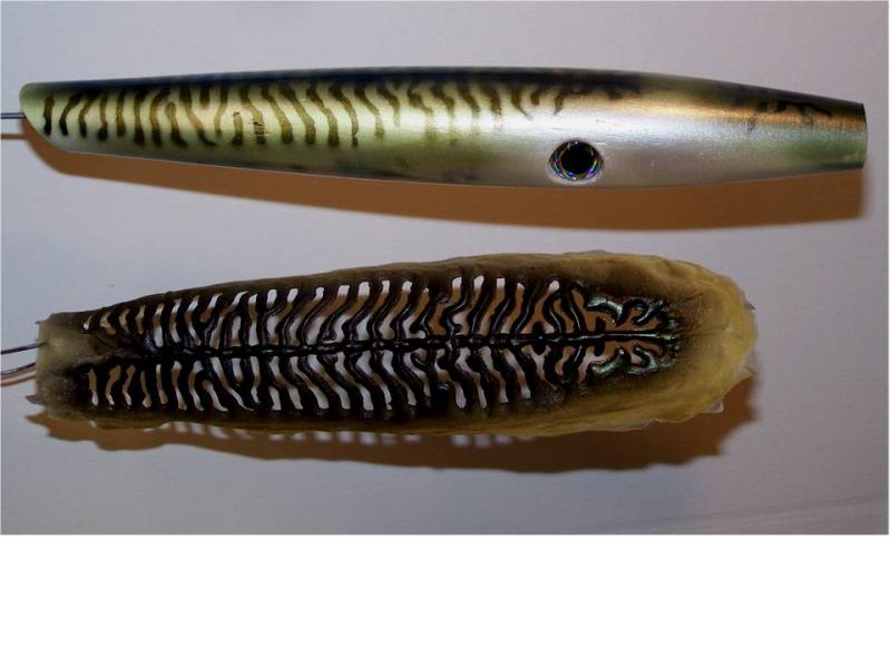 I never do it because they alway look terrible when I try, I know that some guys cut or burn stencils and some use a dremel to make a metal template...I think this is going to work pretty well...I've used this latex for years for mold making, Michael's has it...I printed a mackeral pic doubled back to back and taped it to the plug, the resulting template will be fit snugly to the contour of the plug, for different size plugs simply enlarge or reduce the image on your computer before printing...this stuff will last a long time if you boil it briefly to vulcanize it...I have molds that I've been using for 20 years..