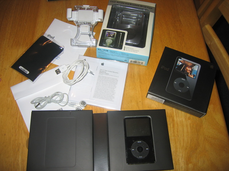 This is a slightly used Ipod Video 5th Gen 30GB the plastic cover on top is still intact all the papers and boxes are included. I also added Belkin Clear Acrylic and Brushed-Metal Case a car holder where you can put your ipod. It also includes the Ipod docking station all the papers and boxes are also included. No scratches on the Ipod.