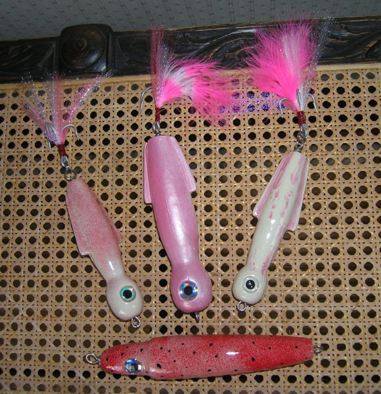 3 of the squids are ass backward relative to eye position but i think they will cast very well and hopefully have catching mojo... the other design is my "dalmation" version of the After Hours squid which I really like