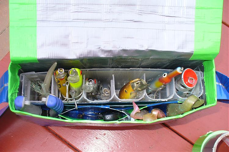 In the past I've used a commercial bag with plastic dividers, a drywall bucket with notches and a soft sided sixpack cooler......but I've never had this many plugs or the desire to test-drive them in some sort of organized way. I just took a few and went fishing.