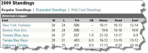 If the season was to end today the Sox would win the Division and the Yank-mees would be the wildcard....Yet they list the Yank-mees before the Sox in the standings.....