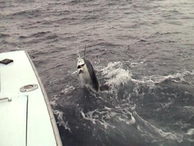 of sea trials emergency surface come up from below 400 ft just like a big missle shooting out of water and you just hope theres nothing up top imagine fishing deep with big water gear and hooking one for a minute you would think you had a big one till it snapped or pulled you in!!! the land is in the background i wonder how deep it is there must be out around catalina island california