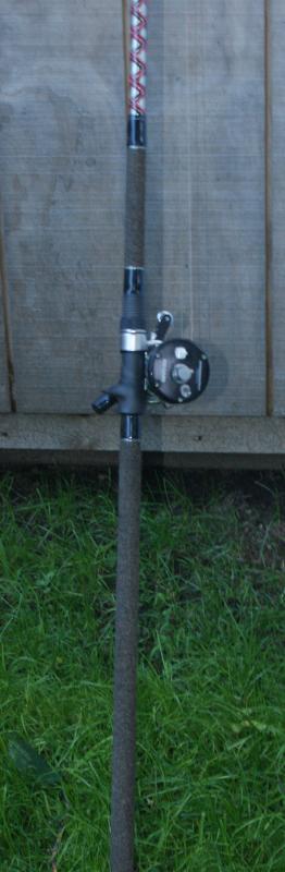 Great rod for live bait, chunking, probably eels as well. Wrapped by our own Goose, Red and Black on the creme / tan blank