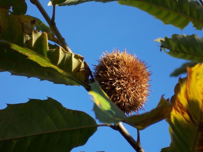 I planted this tree about 10 years ago and this is the first time it ever put out fruit, nuts. It is a special disease resistant American Chestnut variety . Hard to believe that once it was the most abundant food and timber tree in the east. Quoting "within a 40 year span from 1904 over 30 million acres of them were killed making it the largest ecological disaster in American history" that is like 3 billion trees and there are no more than 100 original American Chestnuts alive today as a few had resistance to the blight. They said that in their haste back then that panic logging probably destroyed many healthy resistant ones but they wanted to get the valuable lumber out of them before they died so many were killed that probably could have weathered the blight. Even to this day they are finding solitary trees out in the wild still alive. They have cross bred a couple of those remaining trees around 1962 with a Chinese variety to make it disease resistant and the hybrid I have. Pretty cool stuff.