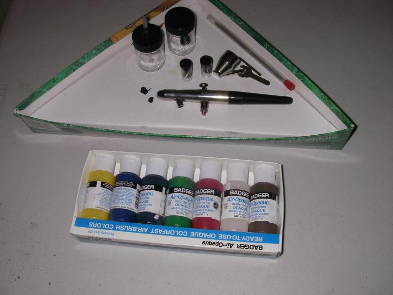 Badger crescendo 175 airbrush. (used once) with badger airbrush paints. $60