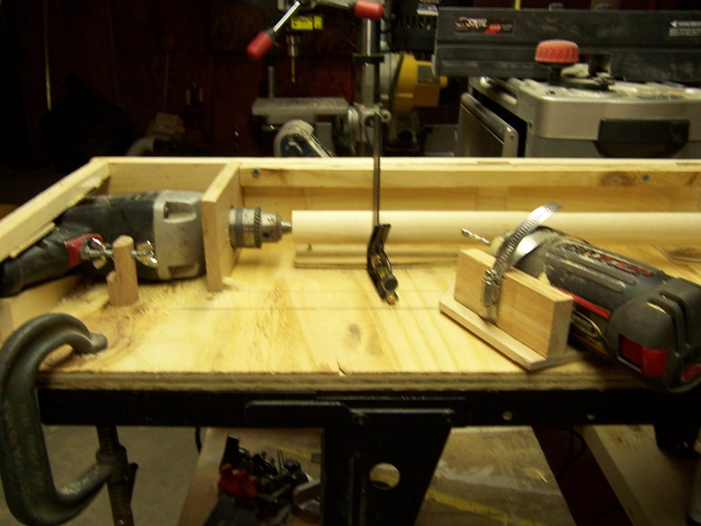 once I got past using broom handles and small dowels to make poppers and needle fish.. I made this lathe.. using an old 1/2" drill and some good old yankee inginuity... originaly I used another drill and a bit to attempt carving as the plug as well as regular wood chilsels.. the lst and most sucessfull tool was the roto zip...