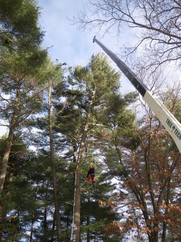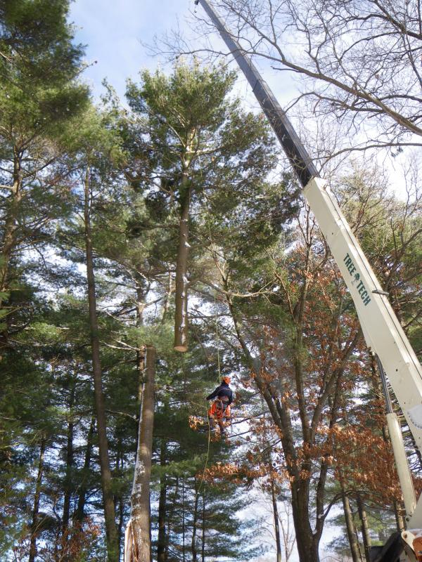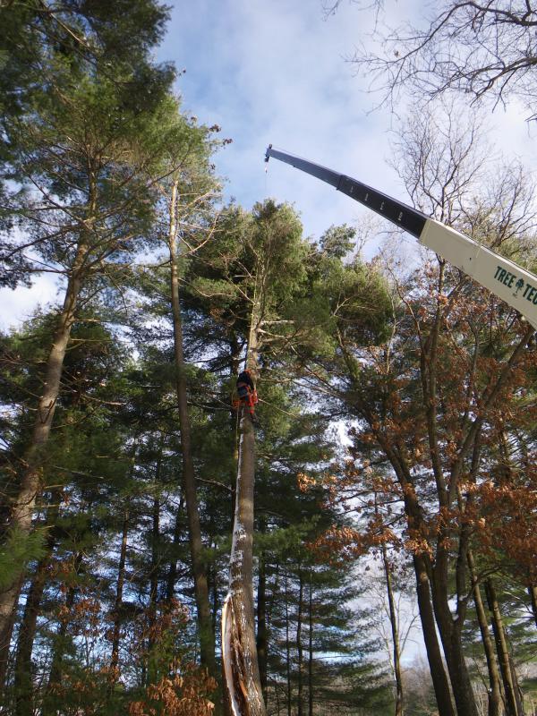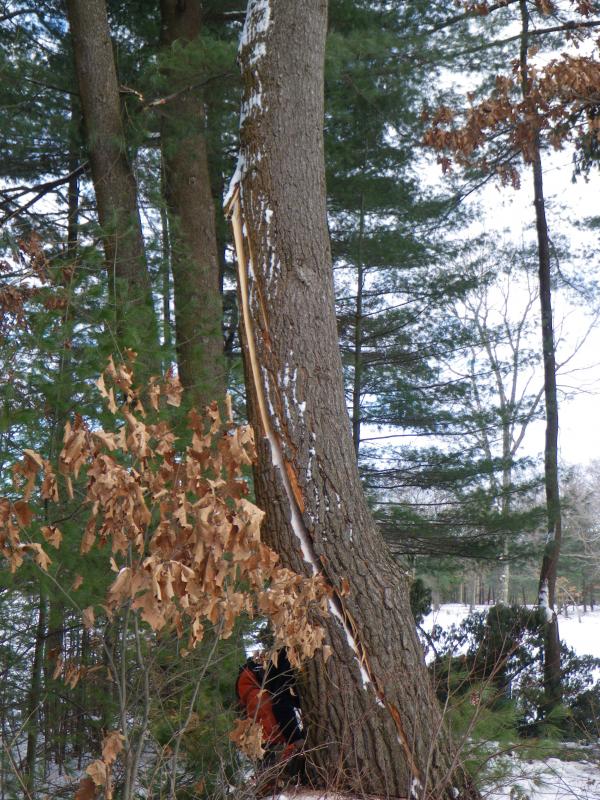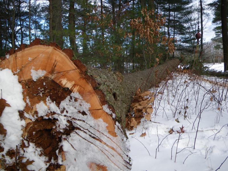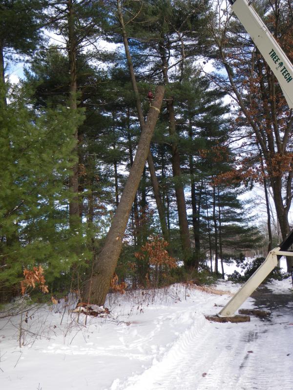 Nice pics. I have some tree work to be done this winter.... Wondering what that ran you for $$$. PM me if you want. I need a little more frost in the ground before I get the crews in with their trucks. Definitely not lightning, as the core was rotted from the base up. Pines are notorious for being weak trees.