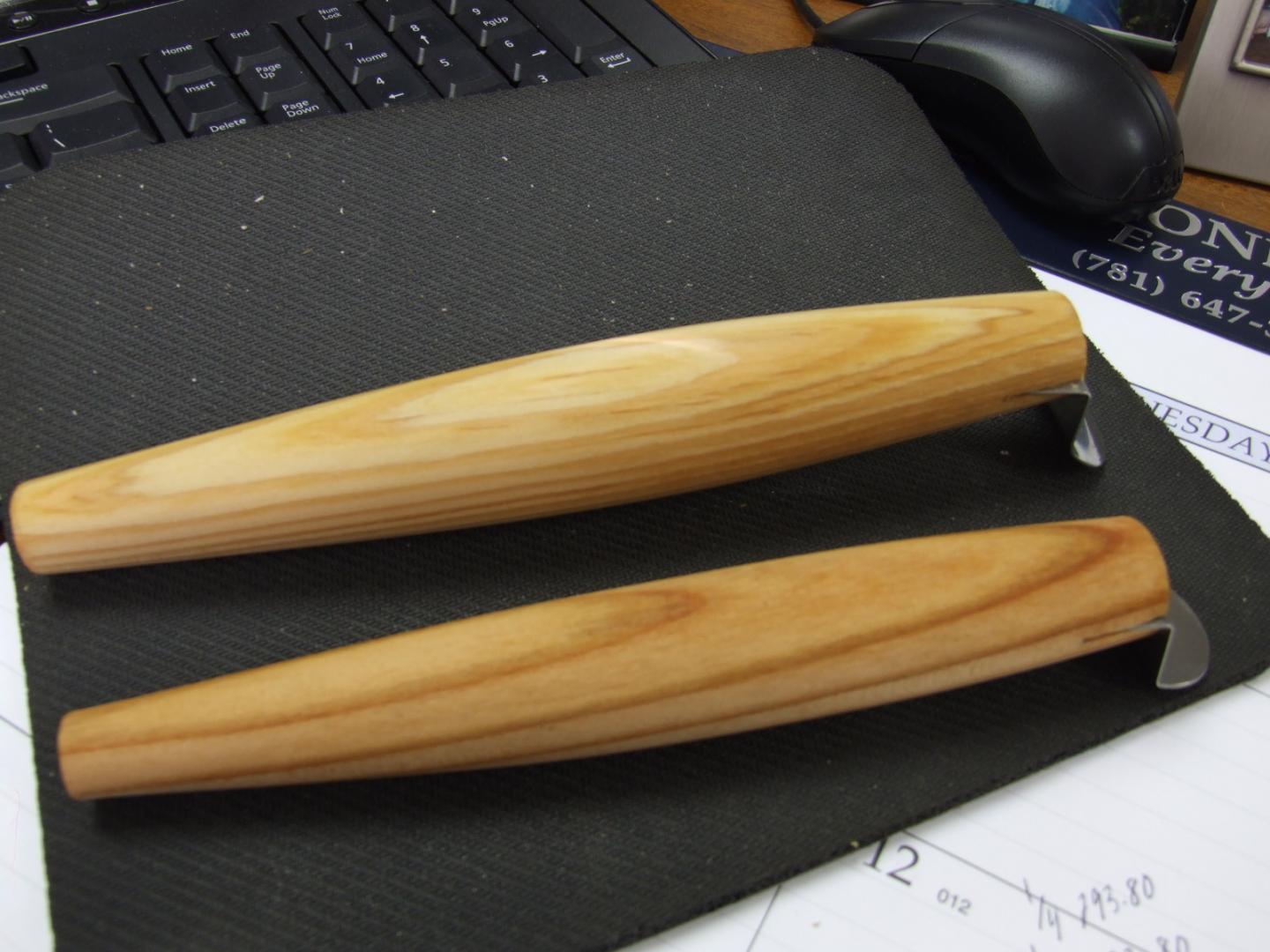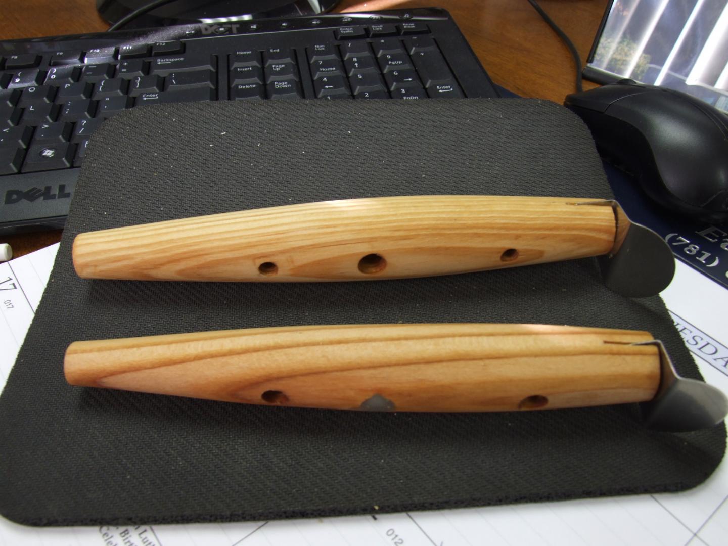 The neat thing about this stuff is its got lazer straight grain, which causes the lure body to parallel with the water, so cutting lip slots and hydro testing was quite simple. I'm a bit concerned with the brittle nature of the wood due to the fact I placed a piece in the water(unsealed) very briefly to orient it and it cracked around the hook hanger holes. Its bouyancy seems to be somewhere between AYC and pine.