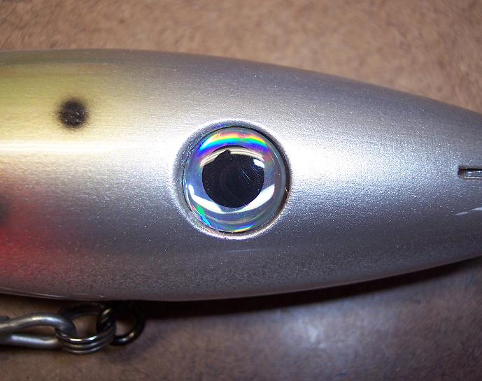 the rest I like a slightly recessed eye, I've found that glueing them in place rather than just sticking them on eliminates bubbles when you epoxy the plug..reason being, the trapped air behind the eye socket expands as the plug in my heated spinner revolves...