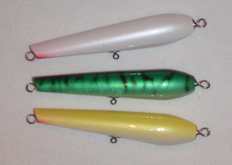 Couple more mini canal specials for Plugfest trade bait 6" 2oz. And some normal pencils at 7" 2.2oz. The Greek inspired me to build these after he told me had to retire the last one I traded him.