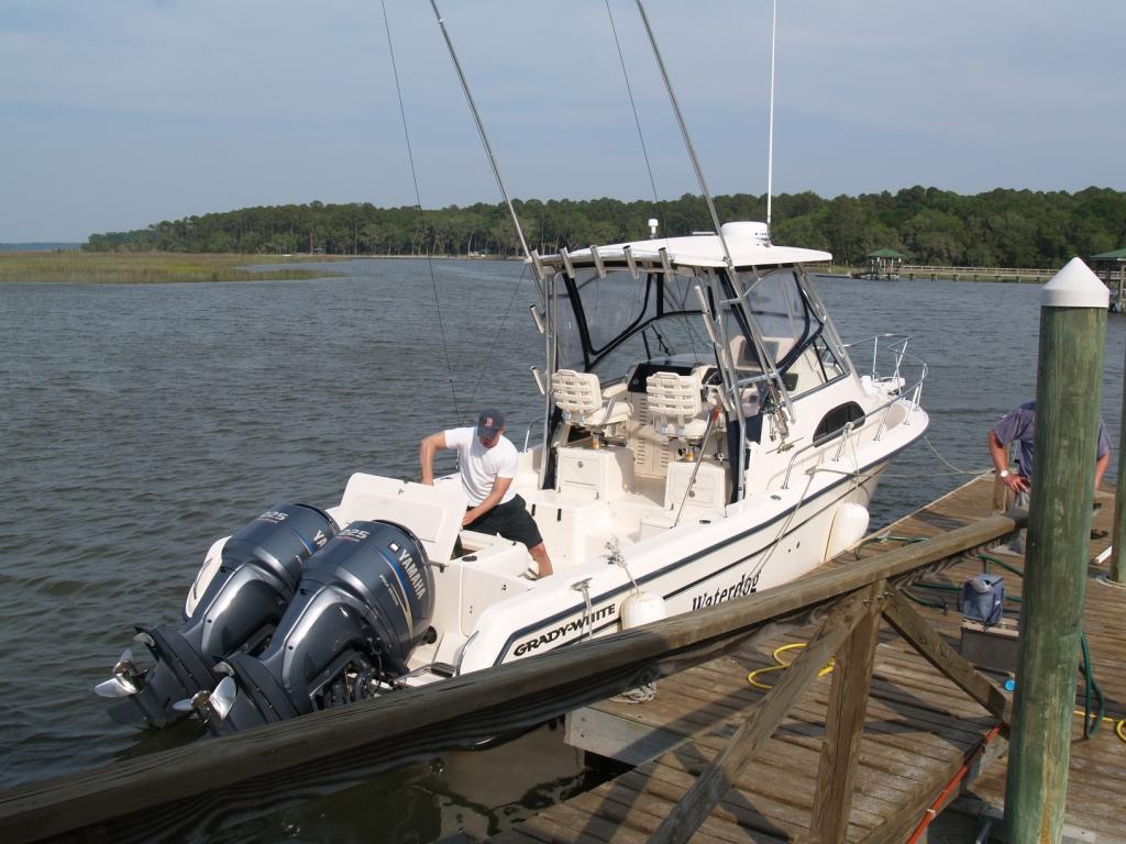 28' Grady $90K with 330 hrs on Yamaha 225s. Bottom just painted, engines just serviced and hull just buffed and waxed. Trailer.