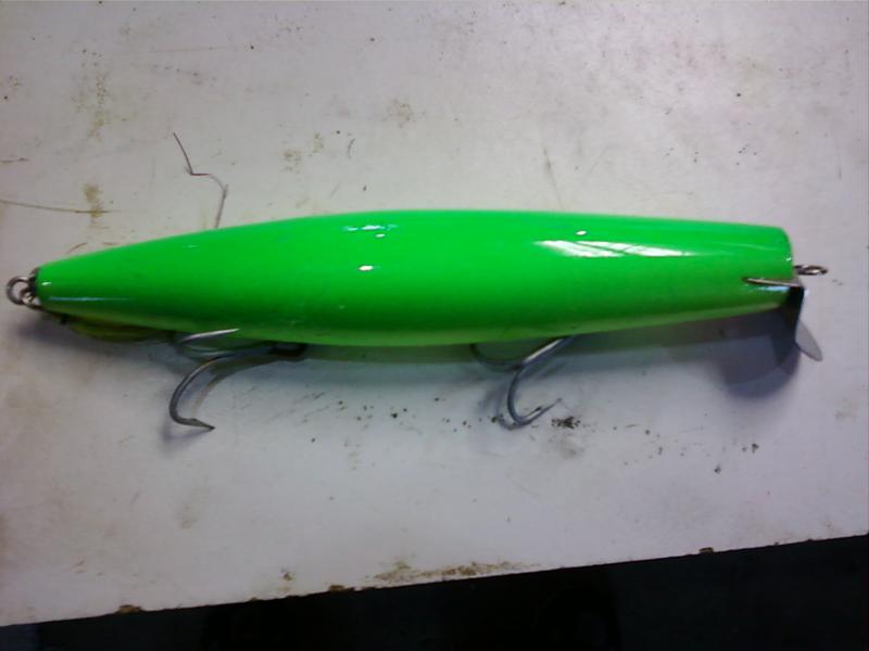 A fatter, higher riding, tail weighted, full size version of the same plug (green cloud)......that I gave to early bird, and swam fantastic, but he under-appreciated so I took it back.