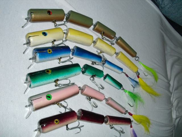 All swim well. The ones with the longer head piece have a nice waggle. While the equally jointed plugs have a nice wiggle, like an eel.