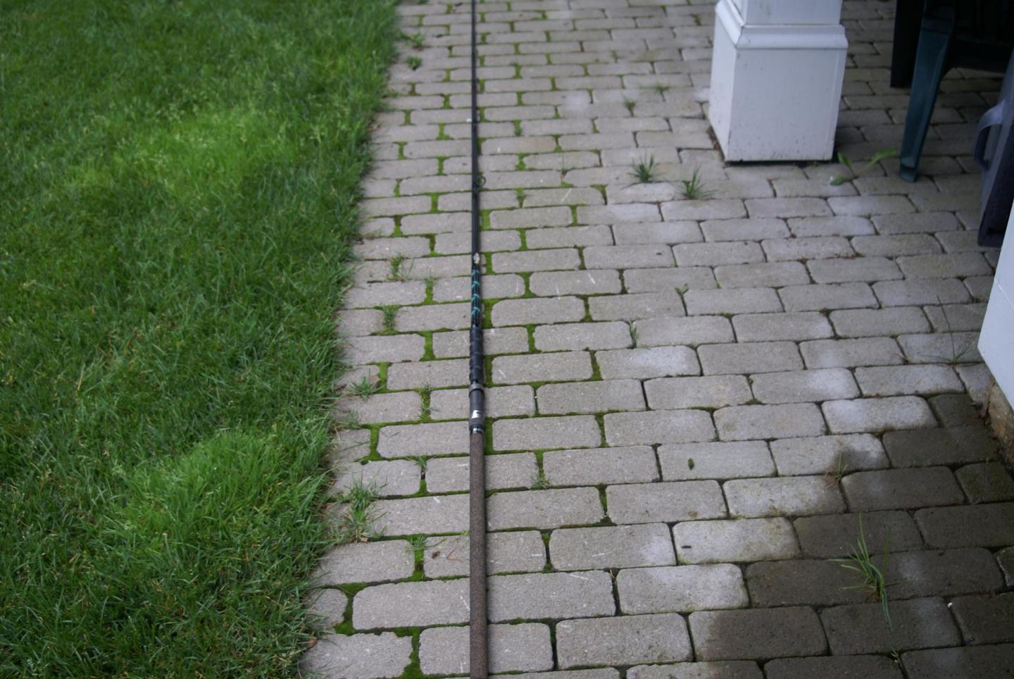 10' harnell blank. stripped and refinished last year. its a nice fiberglass meat stick. good for big shads and jigging.has cork tape and shrink tube front grip. i would say it is 4 - 8 ounce rating . nice rod