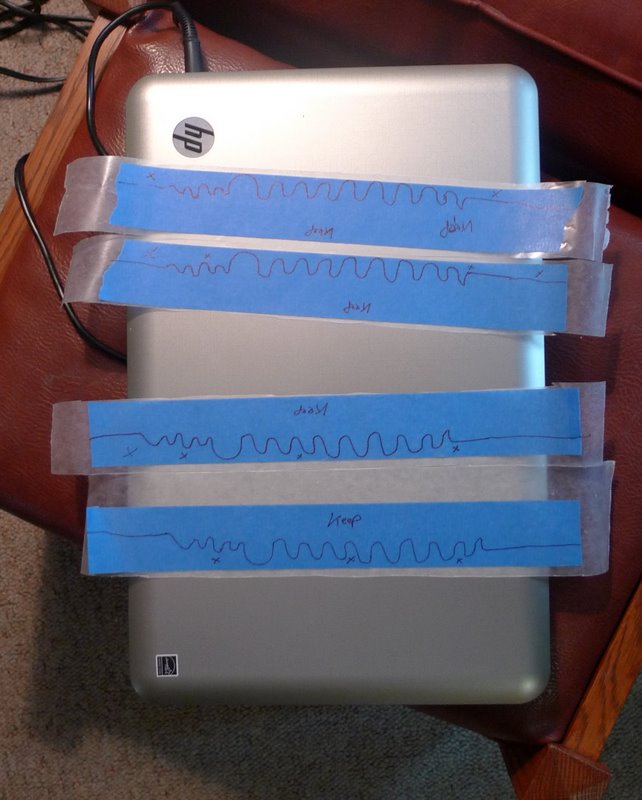 Next I place the stencil on a piece of 3M 2 inch wide painters tape (BLUE) and tape it down on both sides. The painters tape has been affixed to wax paper and that is taped down as well. If you want to prep both L and R sides at once you can have a second piece of