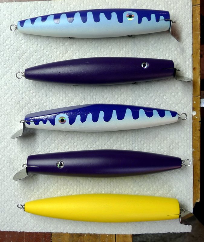 I have recently been making building several Musso metal lipped swimmers and needles and making them with 2 and 3 color scallop paint patterns.