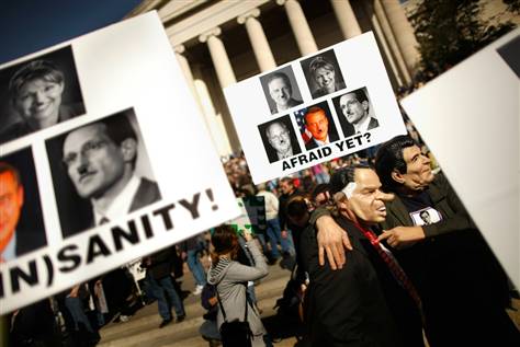 “I can’t control what people think this was. I can only tell you my intentions. This was not a rally to ridicule people of faith or people of activism or to look down our noses at the heartland or passionate argument or to suggest that times are not difficult and that we have nothing to fear. They are and we do. But we live now in hard times, not end times. And we can have animus and not be enemies.