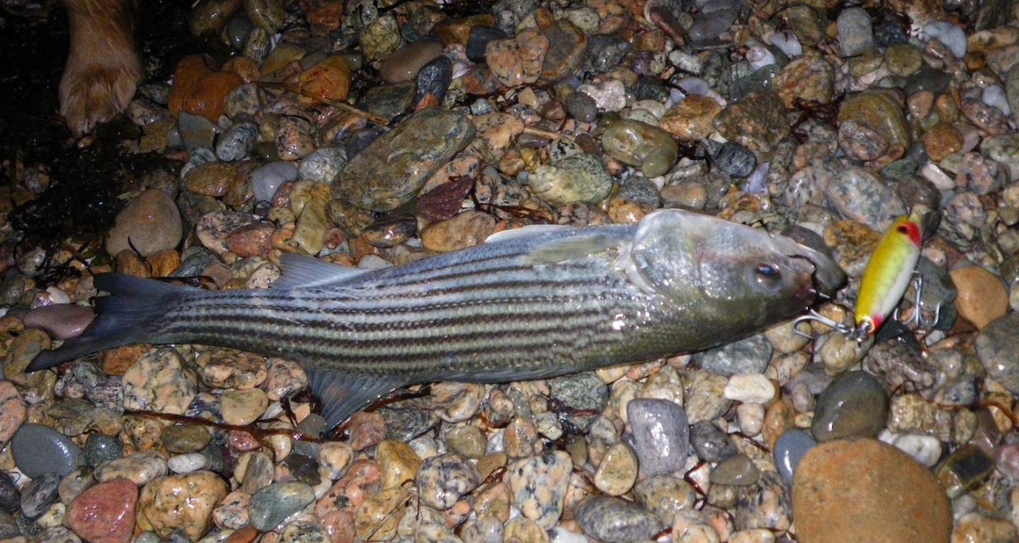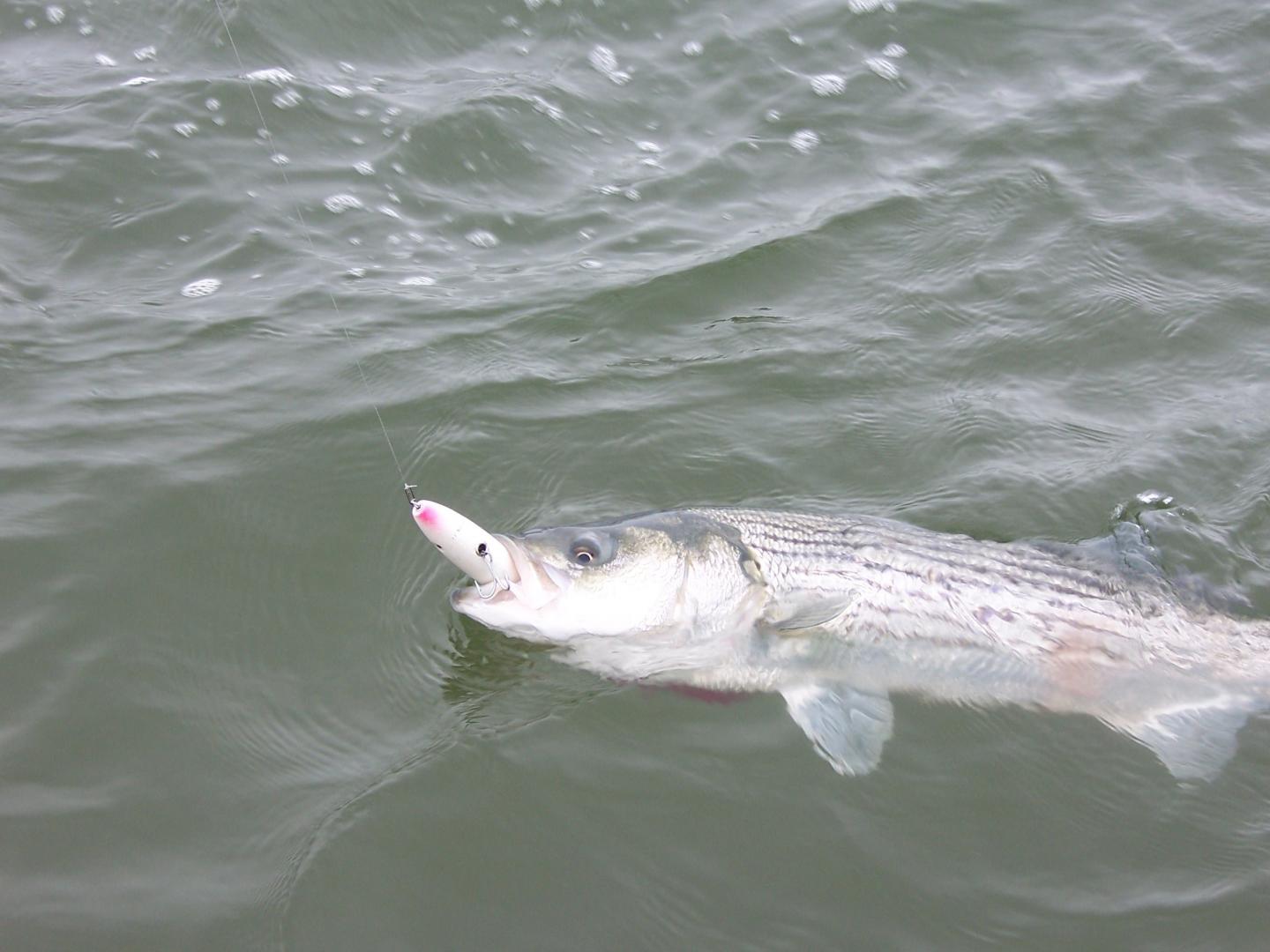 First fish on one of my own plugs.Got this fish on a pollack pencil I made. Its about 2.25 oz and floats with a slight tilt...works real nice on a slow retreive...I feel accomlished, now back to eels...