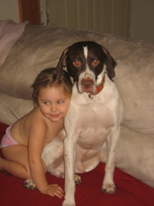 I have 9 year old male pointer, He is a great dog.