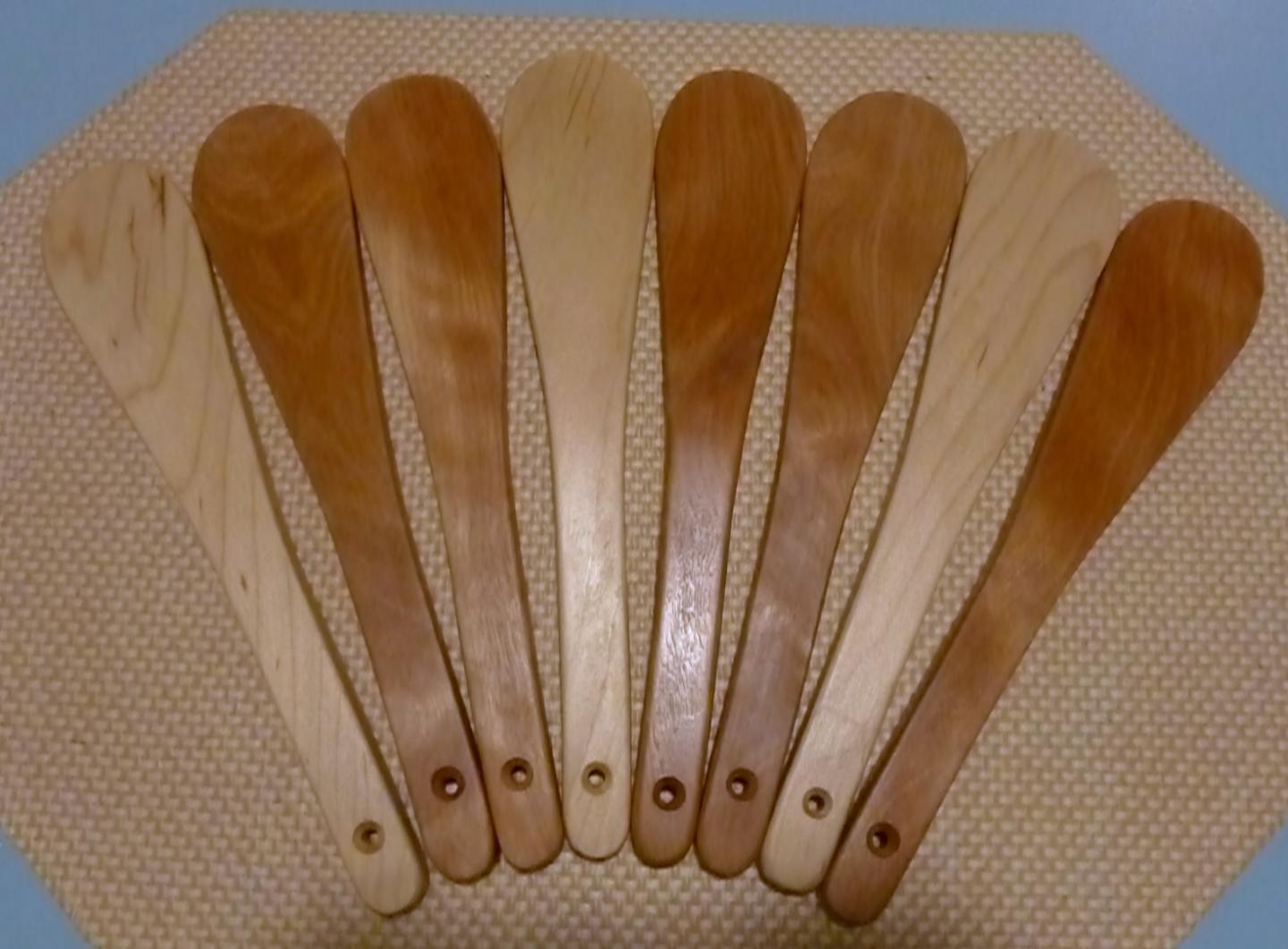 I am selling about 6 curly/tiger maple needles and 2 pencil poppers so get there early if you want a plug... they sell out quick The cutting boards are maple/cherry/oak laminates and they are very popular.