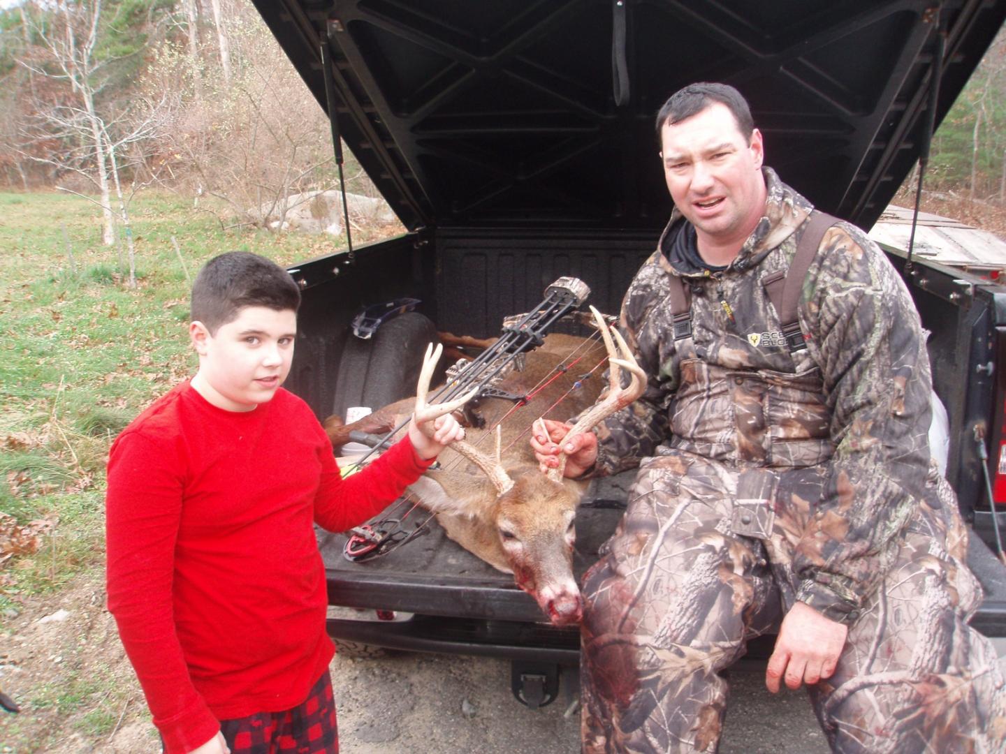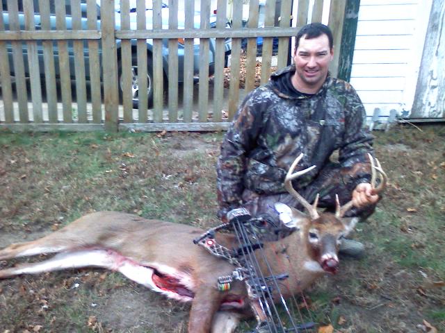 It was a small deer about 160 lbs. maybe 2 years old, antlers were tiny 4 points but he got it. shot the arrow all the way thru, ran 30 yds bled out. he still can't find the arrow.