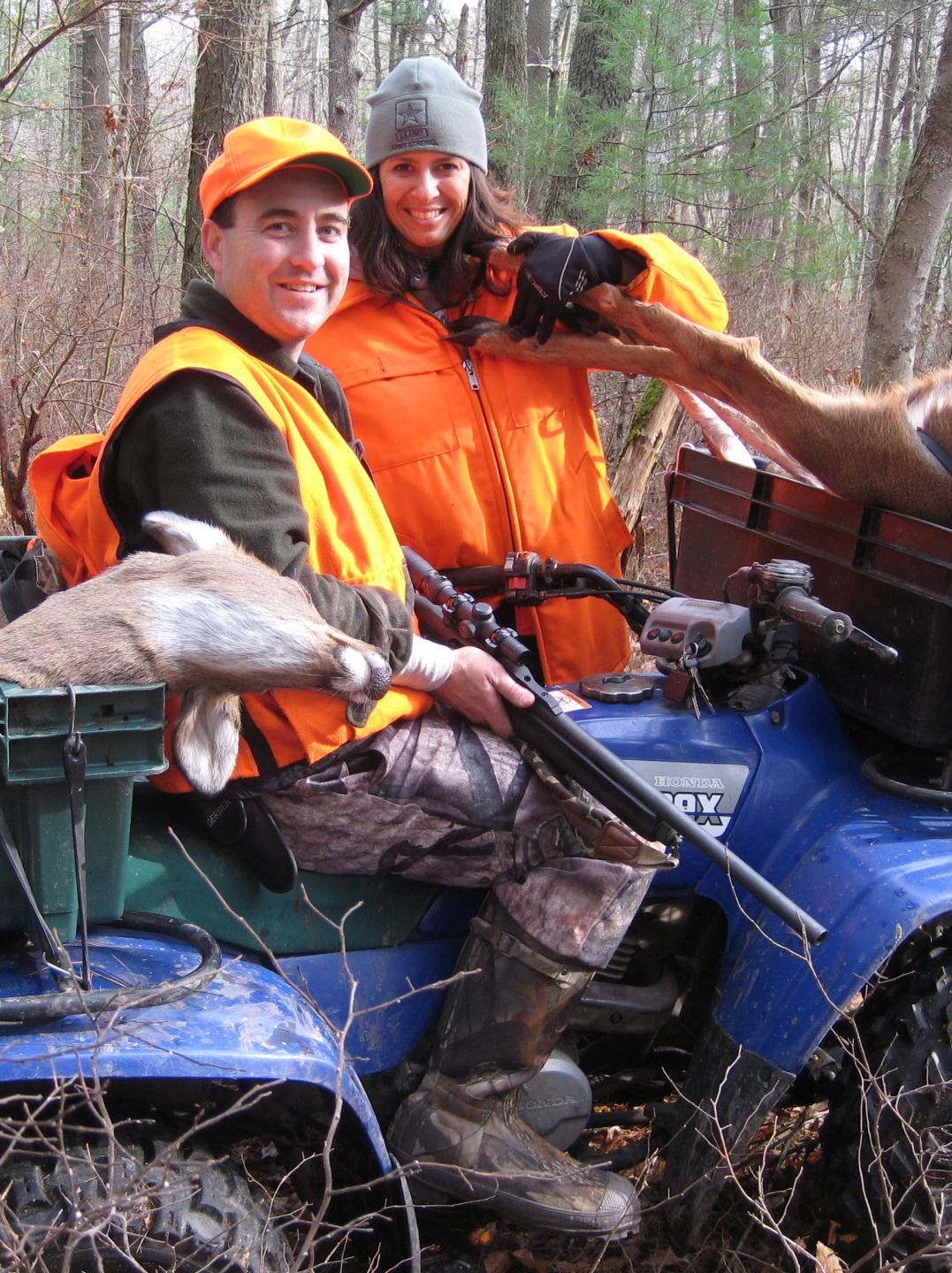 I was so far out in the woods a buddy came down with an ATV with lobster toats bungeed to the front and back for the two does. Saved me hours of dragging...