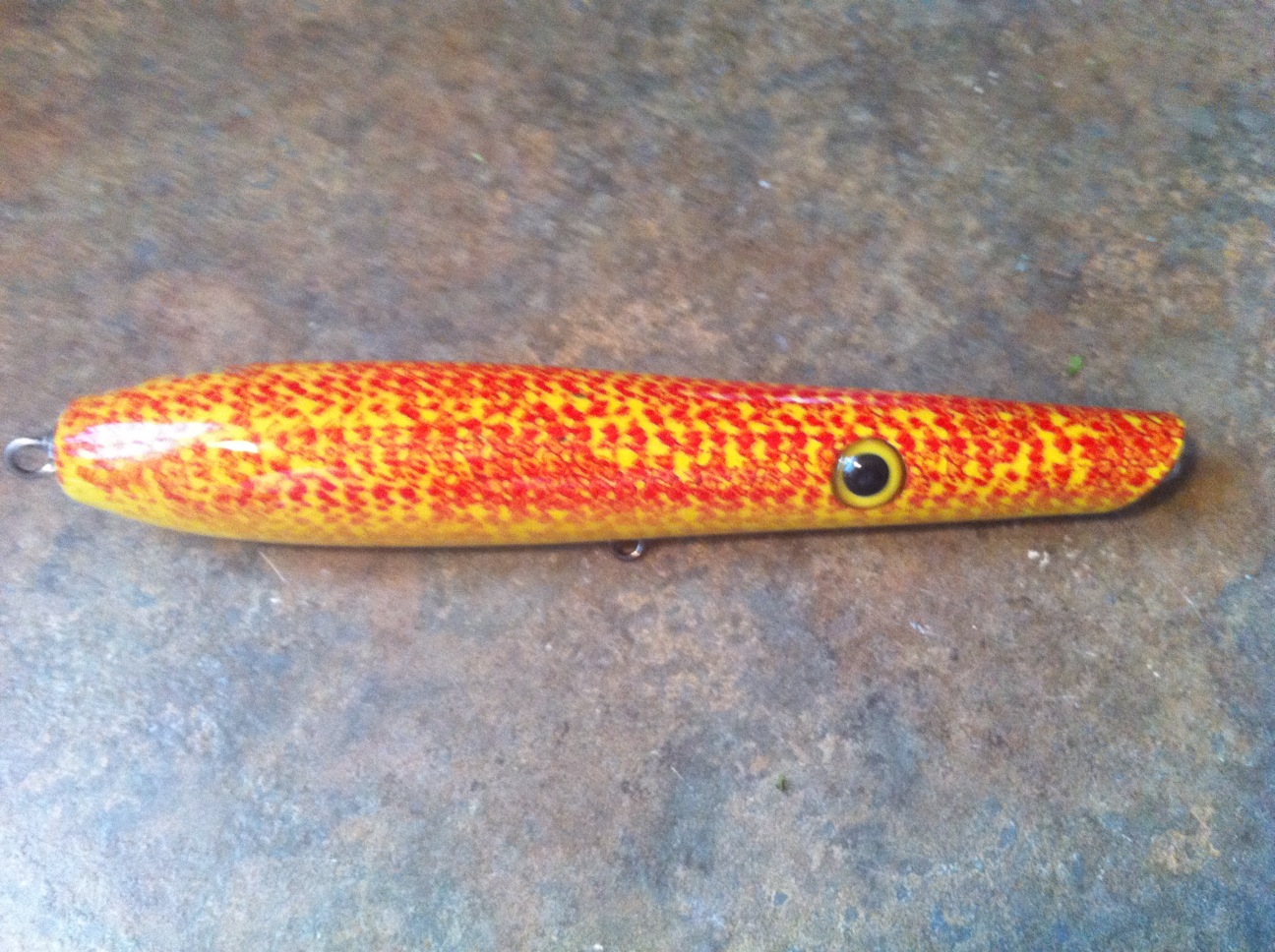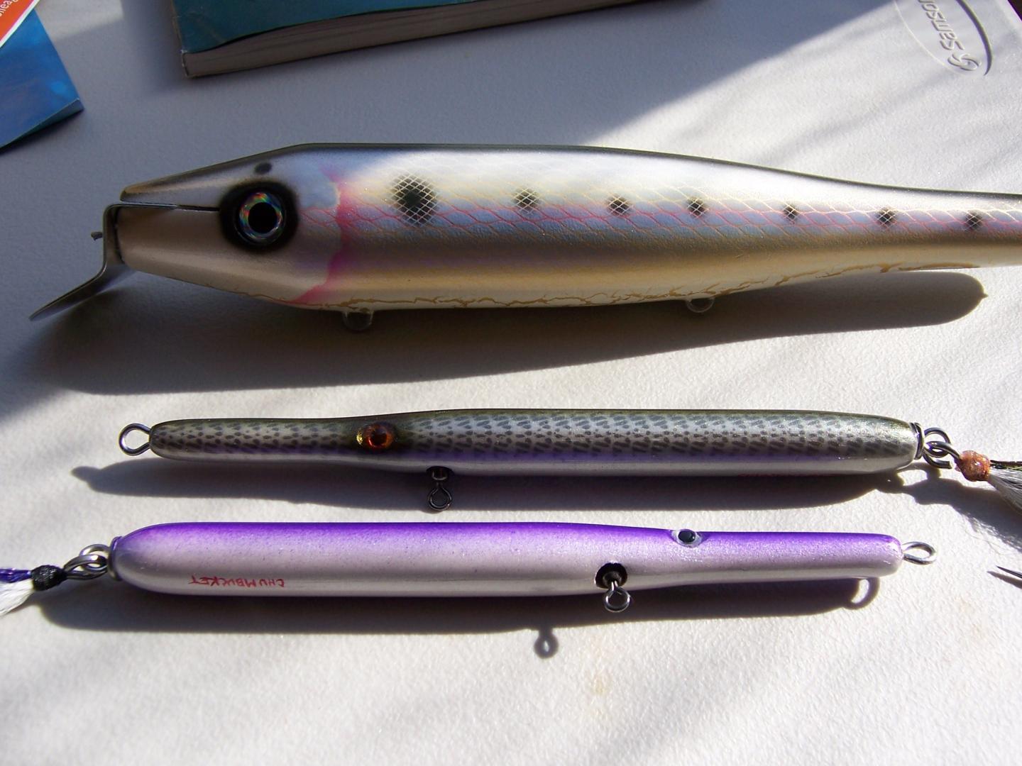 lol .Chumbucket was using that several years ago. Here are some plugs he painted and gave me a few years ago. The needle with that pattern is so nice. The pic doesn't do it justice. I made the larger trolling plug and he painted it for me with every technique I think he does on it.