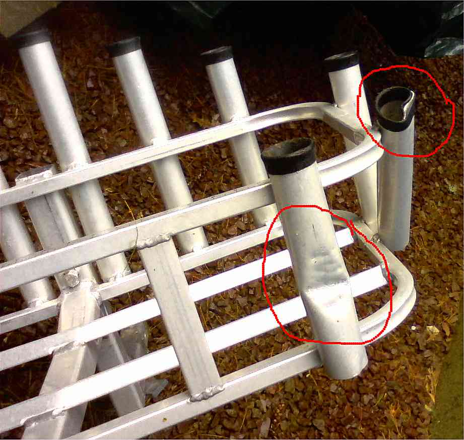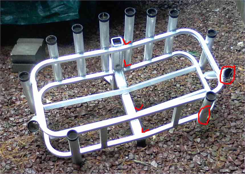 Pics attached. This was backed into by ups. It's not broken just slightly bent. I believe this could be bent back with a little bit of ingenuity. Two tubes are messed up but also can be fixed easy enough. Arrows show bend points, circles show the rod launchers.