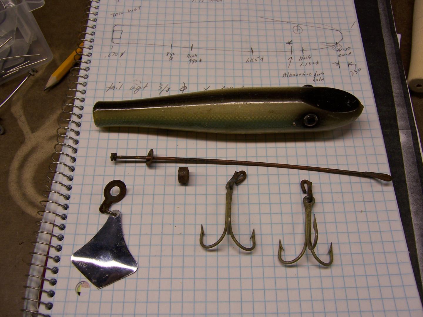 I use lead for tail wgt. Like I said you will have to craft the thing that hangs down. Can be done several ways. Goo goo man, Glenn, did some with a piece of stock and 2 holes recessed into the back of plug like Pt Jude surf slapper. Do a search for it. Worth a look. Probably be the easiest way. I did it the way it was done cause that is how i like to do it and this is a Lido not a Pt Jude. But for just making one that functions that would probably be your easiest way if you don't want to go thru too much trouble. Not that Glenn's was easy, he did a fantastic job. His tail wrap is on front of plug with bike spoke style too.