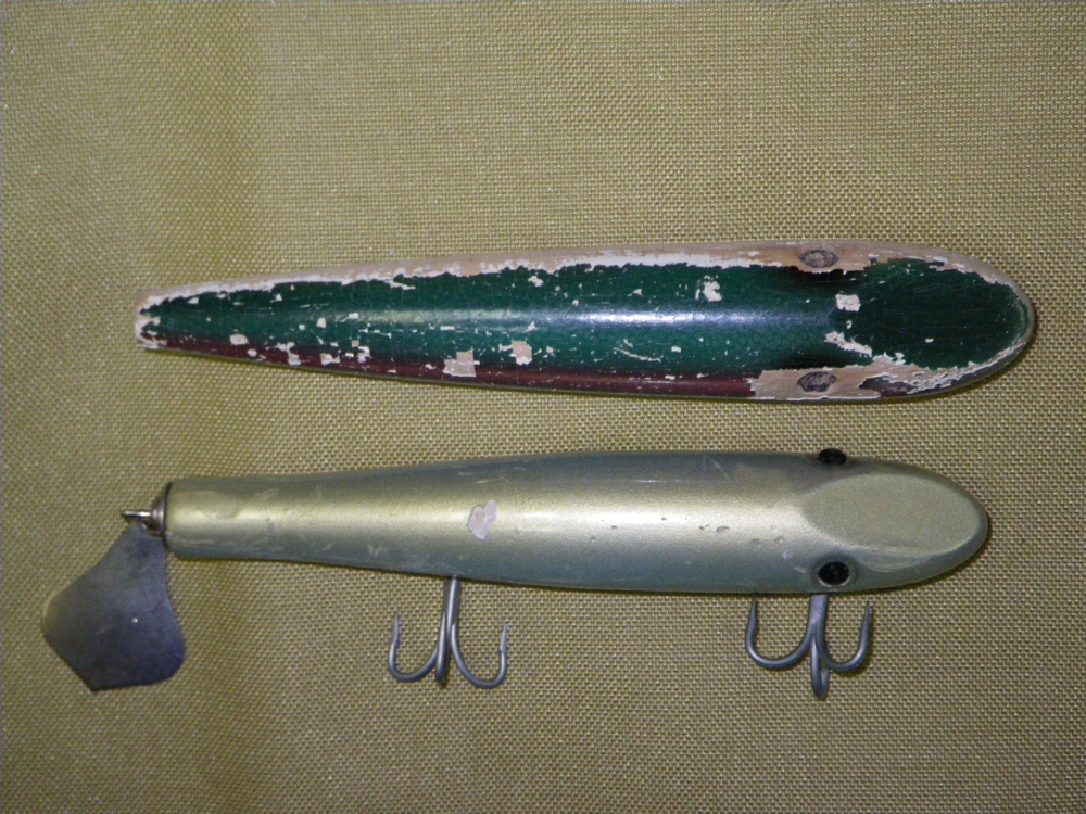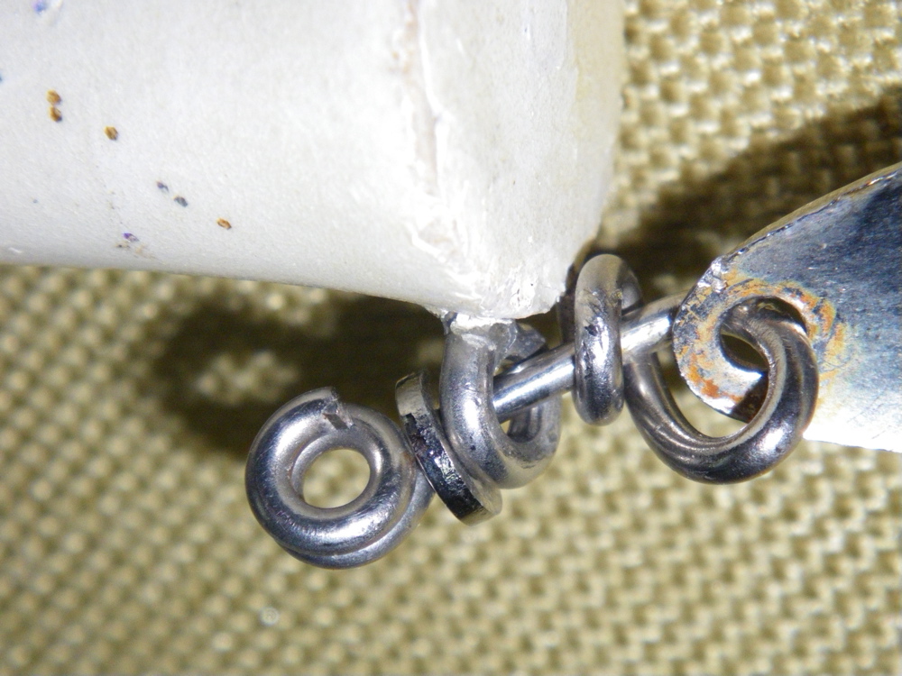 You can see the original which is all brass hangers and thru wire which is threaded in rear with 2 nuts. I did one that way out of stainless, which was a bear. Then I figured out a way to wrap the tail and also you can see another way Capesams showed me using stainless bike spoke which has the nut type screw in the back. I did have to make the little thingy that the flap tail attaches too to make it hang down lower but that piece makes a world of difference in the plug than using a swivel like most modern day guys use. It had a very small tail wgt. in the rear which believe it or not was just plain steel, not lead.